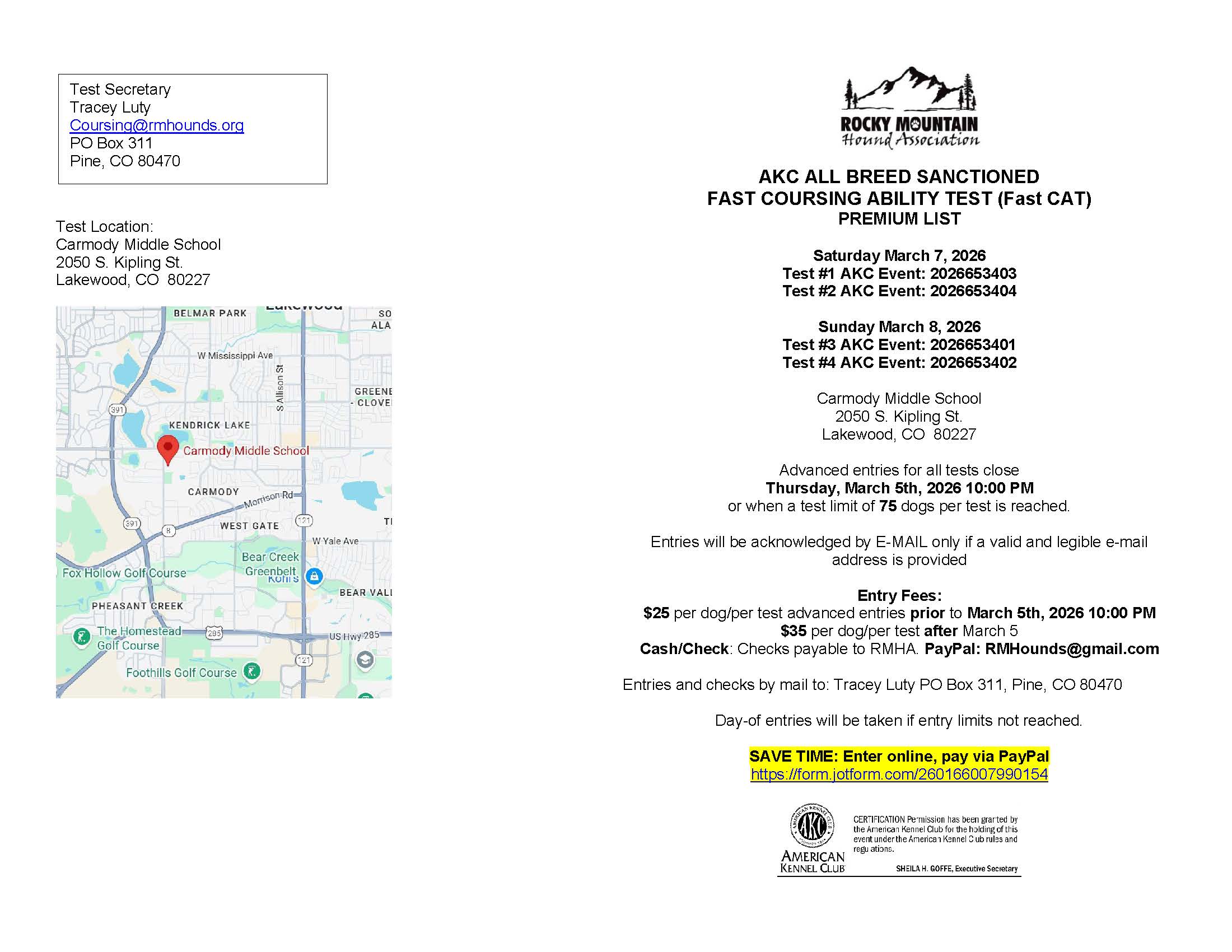 • Obedience and Rally Trials (generally every other year)